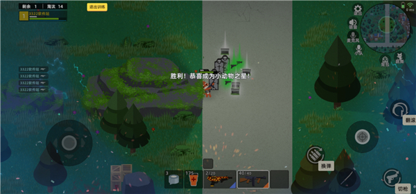 2、独特的地形设置模式,在森林中自由割草,运用丰富的地形设计,成为小动物的最后一颗星;