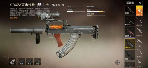 综合性能最强的近战武器,全面碾压其他步枪的输出,而且就算打远程也比AKM和M762后坐力低,这就导致Groza成了AKM和M762遇见必换的武器之前用【上麦】游戏语音和队友开黑他是高手教会我怎么用。但唯一缺点就是腰射扩散很大,如果不想抽筋还是需要多练练开镜拉枪提高上限。