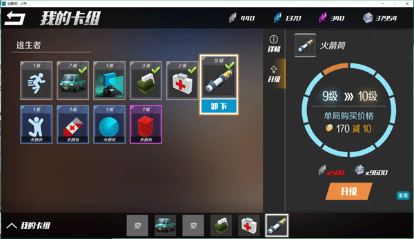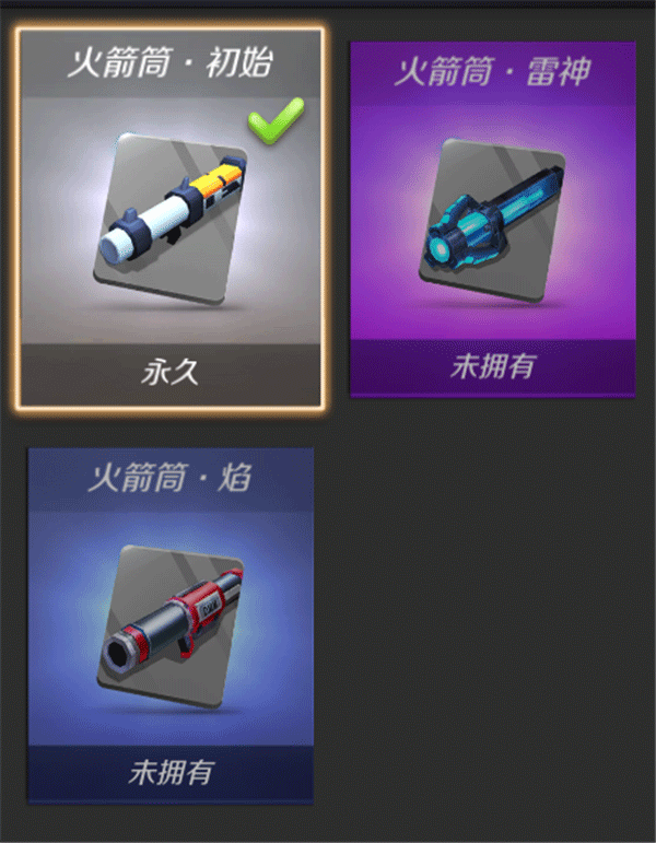 【火箭筒】效果:可发射大颗导弹的攻击性武器。逃生者可升至2级,需要购买弹夹补充子弹;追捕者可升至3级,无限子弹。