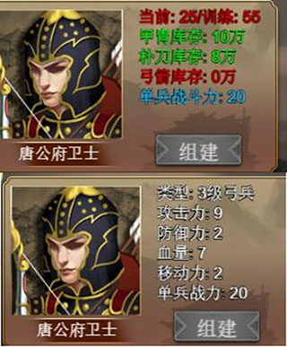 然后是新兵种,该兵种需要的训练度低,所需武器也是较为简单的。比起昂贵的玄甲军确实是非常不错的选择,且弓兵距离+1。