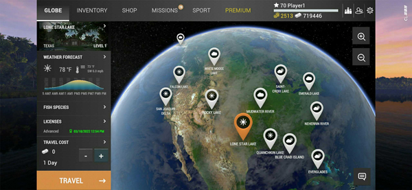 3、加载完成后进入游戏如图,首先在地图上选择要钓鱼的地点;