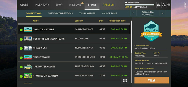 游戏支持单人和多人模式,可以叫上朋友一起玩,在线还能参加锦标赛。钓鱼方式也很多样化,有浮子钓、直柄竿钓和底钓三种类型。喜欢钓鱼的朋友一定会爱不释手,而且新手教程也挺简单,操作起来很容易上手。