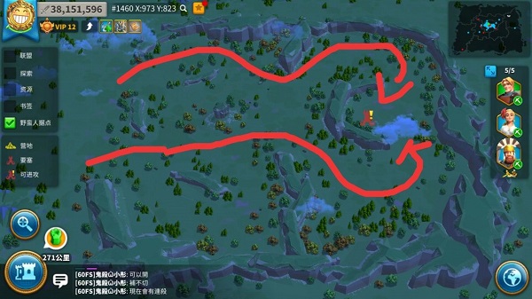 世界地图上,独具匠心设计了丰富的互动元素,如关卡,圣地,资源点,野蛮人据点,山洞,领土等玩法。
