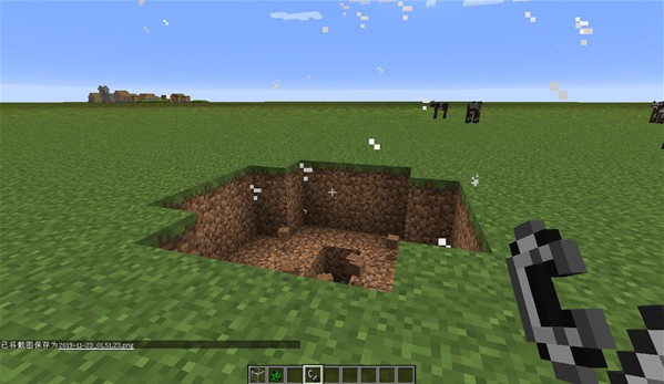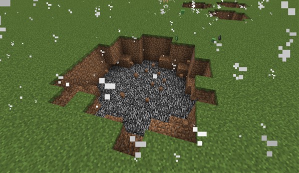 带有力量效果的爬行者爆炸之后留下的带有力量药水滞留效果的爆炸坑洞。