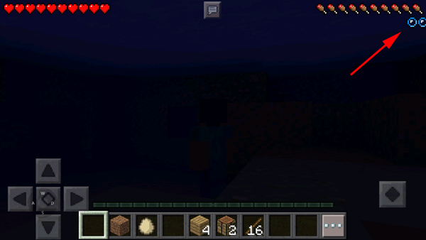 5、这个左上角的红色心是生命值,右上角的鸡腿是饥饿度,当鸡腿达到0个的时候,红心生命血量会开始减少。
