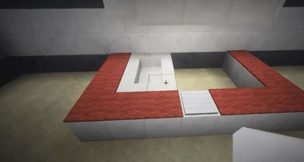 在上面铺上一层红色地毯, 最中间放置一块白色的测重压力板。