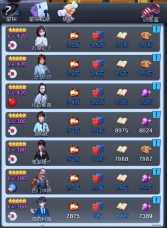 首先我们说说升级艺人,据我的经验我的金币只够培养7个主力,这里的主力等级是所在档位20。所以需要理清自己的阵容那些是主力,如果分不清的可以更贴说下自己所在档位及阵容,我还可以给你点意见。