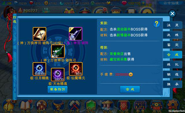 战斗体验超级爽快,装备掉落也特别多,副本种类丰富,既有剧情副本又有渡劫副本和探宝副本,满足各种需求。特别是打造神器的部分,材料获取途径清晰,适合想要变强的玩家。
