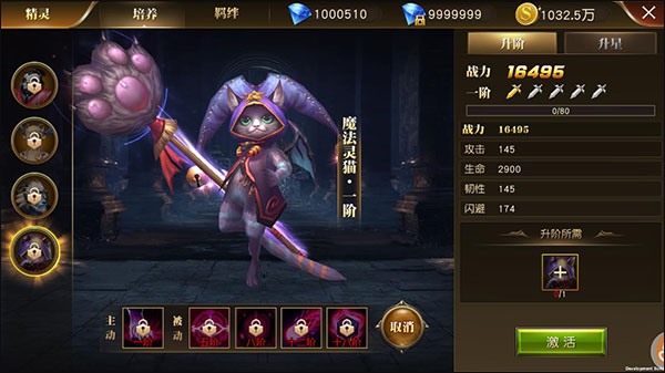 2、精灵技能的激活需要通过精灵升阶,而技能的等级需要通过精灵升星提升;