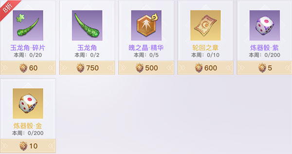 个人奖励中包括宝石箱,玉龙角碎片,玉龙角,帝社积分,炼器骰·金等