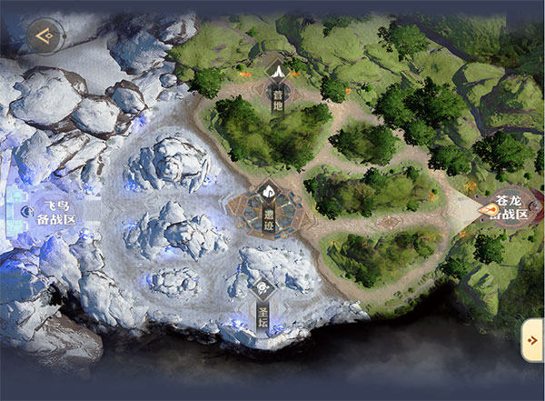 玩家分为飞鸟(红色)、苍龙(蓝色)两阵营,相互对抗获得战场积分,积分高的获胜