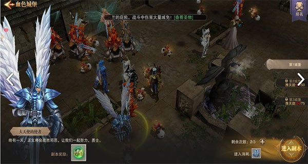 咱们先来血色城堡。传闻大天使使者来到勇者大陆后大天使之剑意外遗失,掉落在了血色城堡之中,玩家在游戏中会接到大天使使者的任务,帮他到血色城堡中寻回大天使之剑,恢复大天使使者的力量;