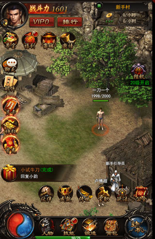 1、进入游戏之后出现在眼前的是一片鸟语花香的山村古道,我们的征途就从这里开始了!点击主线任务面板,开始《传奇来了》的第一个任务吧。