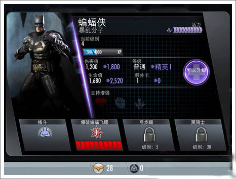 7、后期有1关是40级的5级精英蝙蝠侠敌人,拥有15W生命,2W多攻击,如果你没有3个超级大招基本玩不过去,好在本站提供的游戏已经实现了无限金币,过关那就是分分钟搞定的事情。