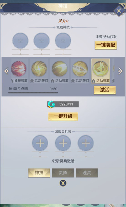 4、当然,在游戏内还有神技可以学习神技,各种修仙技能应有尽有,大幅提升角色灵力。