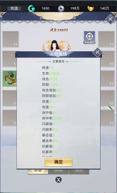1、在游戏内,玩家可以通过角色系统对英雄人物进行培养,给角色一键装备、切换装扮以及激活各种仙器等。