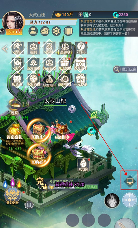 6、作为修仙游戏,自然少不了boss系统,玩家可以通过捕获boss来进行boss挑战,获得大量元宝道具等奖励。