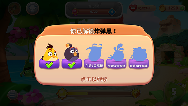 6、当玩家闯关到一定关卡时会解锁别的能力小鸟,助你轻松过关;