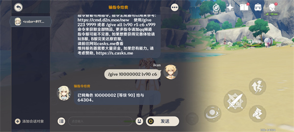 登录方法也很简单:进入界面选择天理服务器,输入账号密码就能玩。添加角色的话,在背包里选第三页就能看到所有角色卡,轻松解锁。指令功能更是方便,通过访问特定网址生成代码,输入游戏聊天框就能直接获得满命满精的角色,省去了肝材料的麻烦。