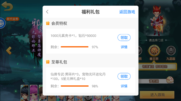 全服统一发放福利礼包码: vip666内含:1000真充卡*2。钻石*50W,圣兽碎片任选箱☆99