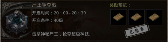 尸王殿活动开放时间为:每周1、2、4、5的20:00-20:30。