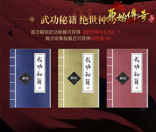 1、武林秘籍 绝世神功首次解锁武功秘籍可获得【绝世神功礼包】*1,每次收集秘籍还可获得悟性值*30