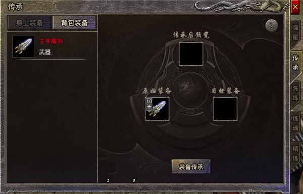 2、无论目标装备是否有强星、炼魂、精炼,传承装备的各种各种强化均会清空,所以传承需谨慎。