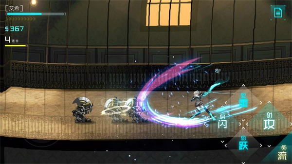 2、我们可以通过左边屏幕来控制艾希的左右方向移动,右边分别是闪、重、攻和跃,也就是闪避、重击、普通攻击和跳跃,玩家需要灵活运用不同的按钮来获得更好的游戏体验,
