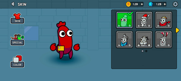 2、进入游戏后如图,点击skin,玩家可以在这里更换角色皮肤;