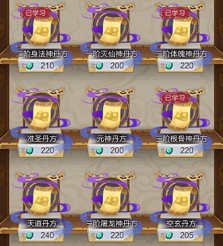 ④丹方优先买根骨丹方,然后才是真气、身法、体魄,其他人丹、灭仙等丹方不推荐购买,这个就、基本上没用。另外,前期地下的普通丹方只吃50个就可以了,没必要洗髓。凡级、玄级、神品开始洗髓比较合算。神1丹一个加100的属性,而普通的一阶丹只加1点属性。