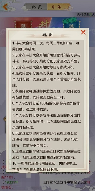 PVP玩法虽然不多,但比武和斗法都设计得很有趣。比武有擂台系统,连胜可以增加人气;斗法则需要策略性地匹配对手。三界玩法让玩家可以选择不同阵营,吸修为或抢灵石,不过红名会被踢出,得实力够硬才行。