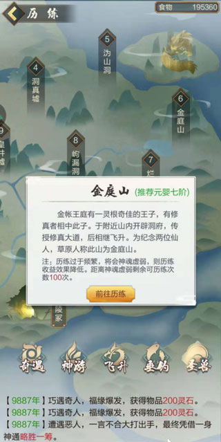 游戏中还有丰富的门派系统和高自由度的修真之路,玩家可以加入超过300个门派,学习独特功法并参与门派活动。此外,金庭山副本是前期重要地图,击败精英怪后可获得炼丹材料和宝箱道具,帮助提升实力。