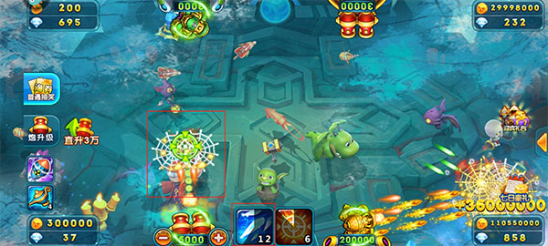 7、当我们打大boss的时候要注意了,一定要抢夺先机,提前将所有道具全开,并且炮弹倍数一定要开到最大,这样捕捉到boss的时候能够获取到非常之多的金币奖励。