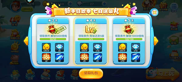 1、首先打开本站已经下载完成的波克捕鱼手游,登录游戏就能免费领取新手大礼包。