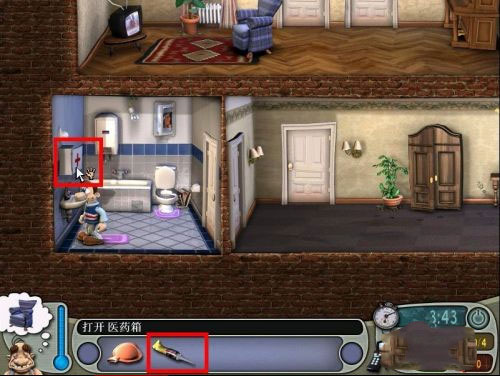进入整蛊邻居1中文版手机版游戏之后,选择对应的关卡,然后游戏的场景一般是两层房间,小男孩进入到一层房间之后,在墙角放着一个柜子,点击过去可以在抽屉里拿到一个暖水袋。