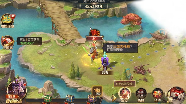 3、全新PVE【北伐中原】:在北伐中原的关卡路线中,你可以选择一路到底直接通关,也可以完成所有支线获取宝箱,或者打败强力敌人获得星级奖励。保底还是更多?你的北伐路线,由你决定!