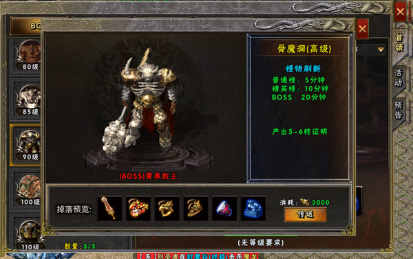 2、选择【(BOSS)黄泉教主】,进入【骨魔洞(高级)】;
