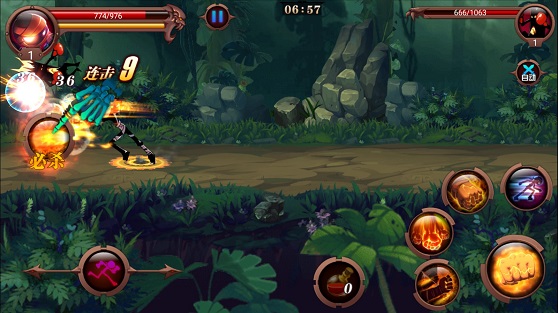 在操作上,火柴人部落游戏使用了经典的按键控制方式,玩家们滑动屏幕左下方的按钮可以控制主角左右移动,右下角则有普通攻击与技能按钮,可以控制整个战斗节奏。不仅技能特效引人入胜,而且各种招式动作流畅无比,碰撞效果也非常真实,再加上按键的位置与大小都比较合适,控制起来相当的得心应手。总体来说,这款游戏还是相当不错的,虽然是简单的火柴人主题,但是却做出了不一样的感觉,对于火柴人的忠实玩家们来说,还是非常值得下载体验的。