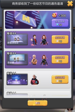 只要玩家朋友追求拍摄时期待值的高低,邀请函似乎在游戏的每个阶段都感觉十分的吃紧。每部影片选好类型完成拍摄前,都会询问是否通过消耗邀请函来对应的增加拍摄剧本的期待值,每消耗10张邀请函,均会概率获得1-40不等的期待值,双艺人参加的通告邀请获得较多期待值的概率大于单艺人参加。