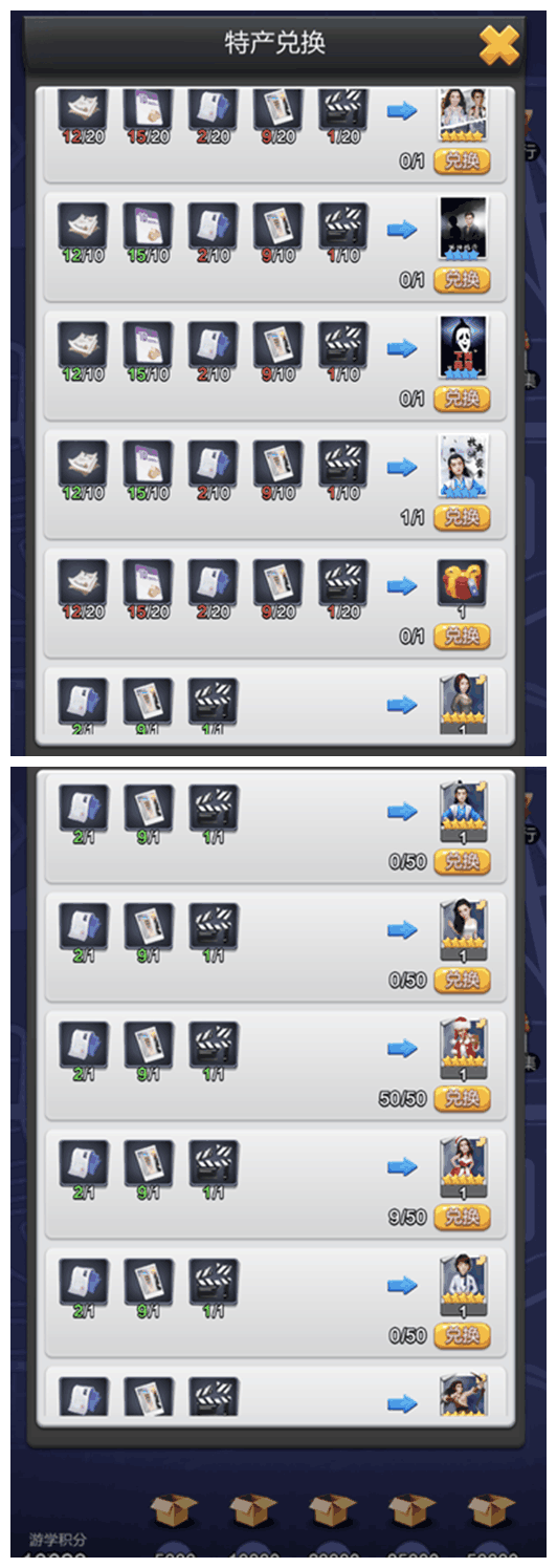 凡是剧本、艺人自选包这种性价比极高的高级资源,均需要消耗影神资料集和影展入场证这两个高级道具。而它们的产出仅存在于黄色与紫色任务之中。