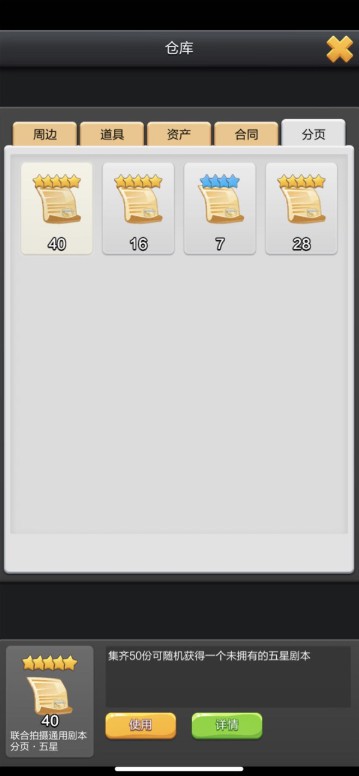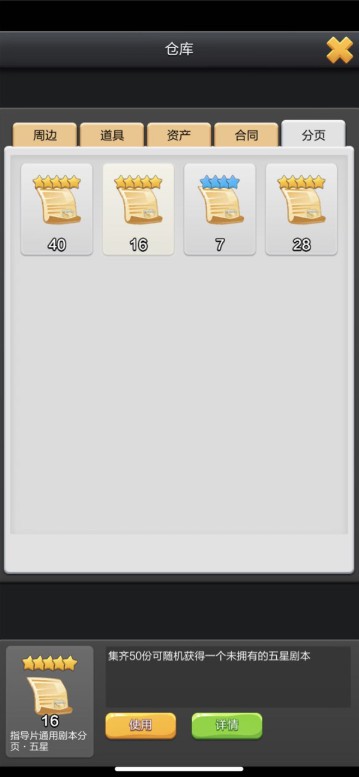 通过介绍我们可以看到,当集齐50份分页碎片后,玩家朋友可以点击使用并随机获得一个未拥有的五星剧本。