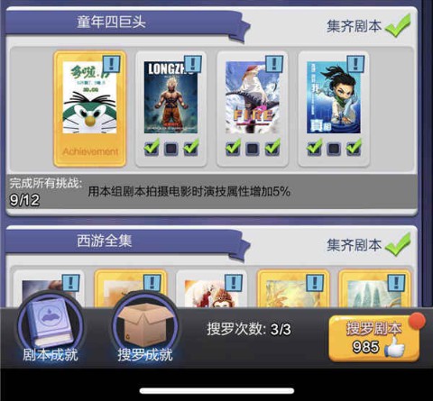 新增完美饰演系统:使用特定的艺人出演特定的剧本角色,将获得票房加成