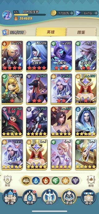 3、主要培养核心英雄,非核心英雄则主要根据作用来选择英雄,不强求某个英雄,主要判断根据该英雄的技能效果>该英雄阵营(注意阵营是为了尽量激活阵营光环,这个虽然加成不多,但是作为0氪、小氪的玩家咱们也得尽量用上)。