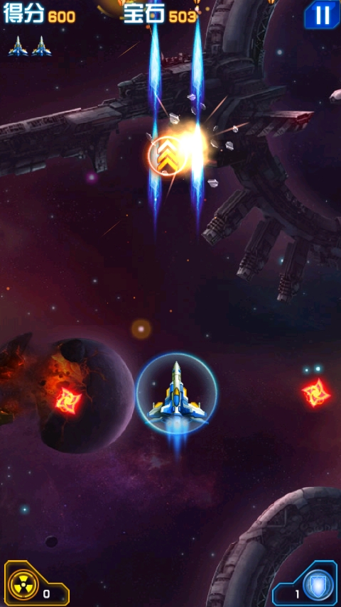2、防护罩:顾名思义,为飞机开启数秒的防护罩,达到免伤的效果。对于场面压制可能效果不明显,但重在持久。