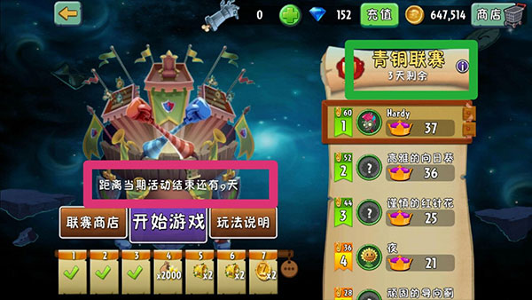 当你过了埃及之后,会开启超z联赛,这个比赛就很有意思了,每次比赛7天为一个小赛季(前三名最低结算时奖励100多钻石)42天为一个大赛季(之后所有人段位降到钢铁,最低段位。)