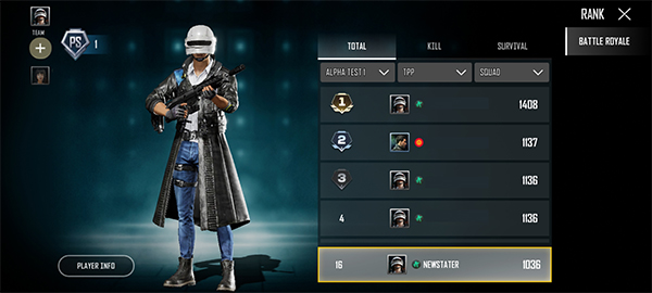 《绝地求生2未来之役国际服最新版》的排名系统会显示从第1到第500名的玩家,排名根据生存者的游戏得分决定。