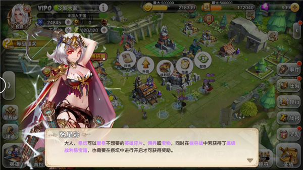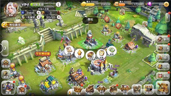 新增的“王国”玩法也挺吸引人,可以和朋友一起打领土争夺战,资源产出也不错。祭坛系统看起来有点复杂,但功能挺实用,能开宝箱也能献祭东西换素材。斗技、勇冠三军、演武场这些竞技模式设计得很全面,适合喜欢挑战的玩家。