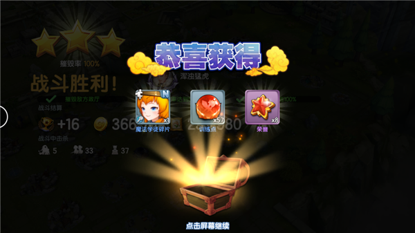 (1)通关奖励:3星胜利可获得当前擂台通关奖励;