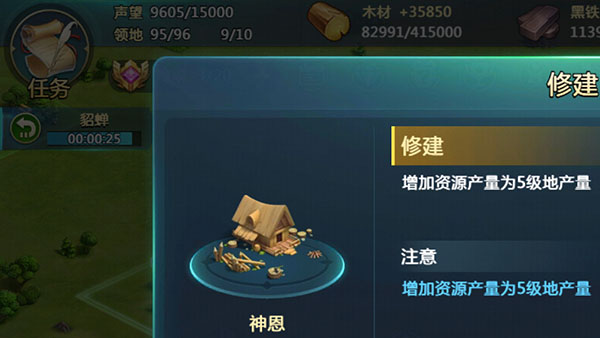 此时随着建筑升级耗时增长,如果一味跟着任务来升级建筑,领主的发展速度可能会受到影响。