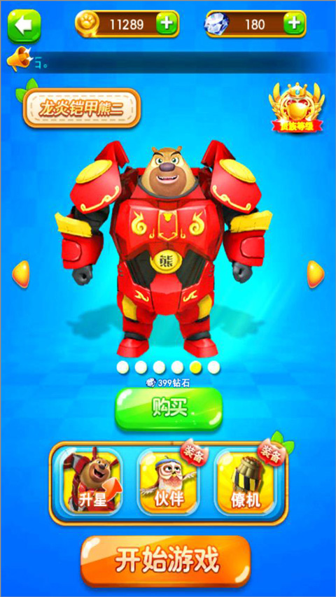 1、打开熊出没之丛林王者游戏后玩家可在该页面查看并购买商城中的货币和礼包,点击开始游戏进入主页;